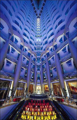 酒店擁有202間豪華的雙套房,餐廳位于最頂層,極其華麗。200米高的可以俯瞰迪拜全城的餐廳以及世界上最高的中庭,除了是一座酒店,更是來此旅游的人定要參觀的景點(diǎn)。它正對(duì)著Jumeirah Beach酒店(曾被認(rèn)為是世界上最棒的酒店)。