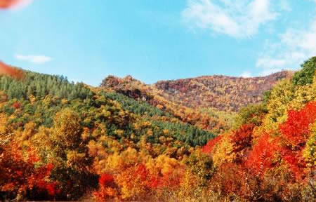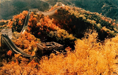 10月25日—11月10日是到慕田峪長(zhǎng)城欣賞紅葉的最佳觀賞期。此時(shí),火炬樹紅得像火、紅得像云,襯著柞樹的金黃、松樹的翠綠,組成一幅五彩斑斕的山水畫,宛如世外桃源一般。游人在此可領(lǐng)悟秋的深沉、秋的收獲、秋的自然美。坐在被紅葉染紅的小溪旁,酌一杯小酒,拈幾粒茴香豆,或與情侶相偎,囁囁而語(yǔ),或扶老攜幼相互嬉戲,那該是一種什么樣的景狀啊。徜徉在紅色叢林間,秋風(fēng)颯颯,紅波起伏,如同暢游在紅色海洋中,那將是怎樣一種心情啊,怎不讓人心醉!帶一枚紅葉歸去吧,制成標(biāo)本,當(dāng)作書簽,送親朋好友,或留作已用,每每翻動(dòng)紅葉,能不勾起溫馨的回憶?