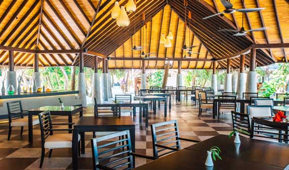 Café全天開放,提供早午晚餐,有可口的小食,三明治,沙拉等。用餐的同時可以眺望馬爾代夫特有的陽光照耀下清澈的水面。
