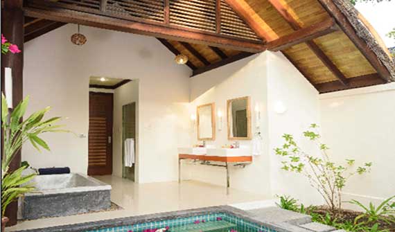 隱藏于郁郁蔥蔥的熱帶植物中幽靜的兩層套房提供極致奢華的旅行體驗。配有私人泳池,日光浴平臺,休息室和沙發床區以及帶淋浴的花園庭院的浴室。這套房為您提供一個開放的體驗不只是在空間上,更為您創造一份溫暖宜人的舒適環境。