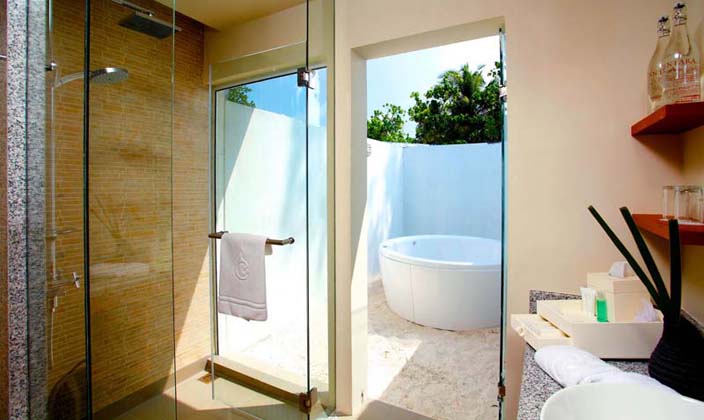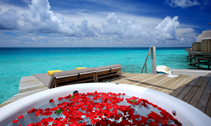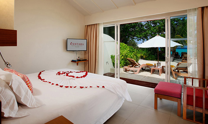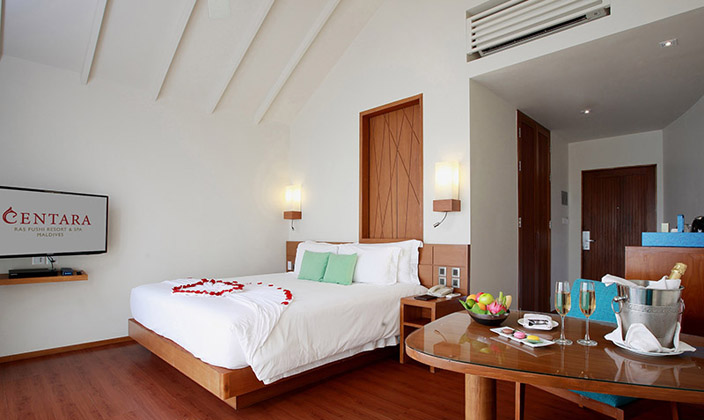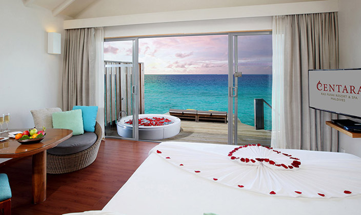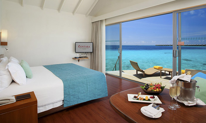 建立在水上,能欣賞到馬爾代夫壯觀日落美景,有直接下海的樓梯。每棟別墅都擁有一張特大號床或兩張單人床,以及帶淋浴的浴室。