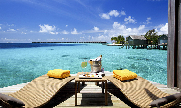 每個內設豪華水上別墅設置高于清澈透明的海水醒來看見印度洋的美景,別墅提供寬敞的居住空間和一套帶家具的陽臺,可以從階梯直接走到海里。