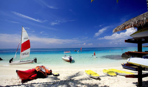 圣塔拉富士島與中央格蘭德屬于姊妹島,主沙灘即沙屋前面的沙灘海岸線長245米,漲潮時約210米,沙屋到海的距離大概是10-15米。而且全島有免費WIFI,房間較新,價格較劃算,并且還是一價全包島,環礁中央有個巨大的瀉湖,同時還有豐富多彩的活動等待您的參與,總體來講性價比很高。