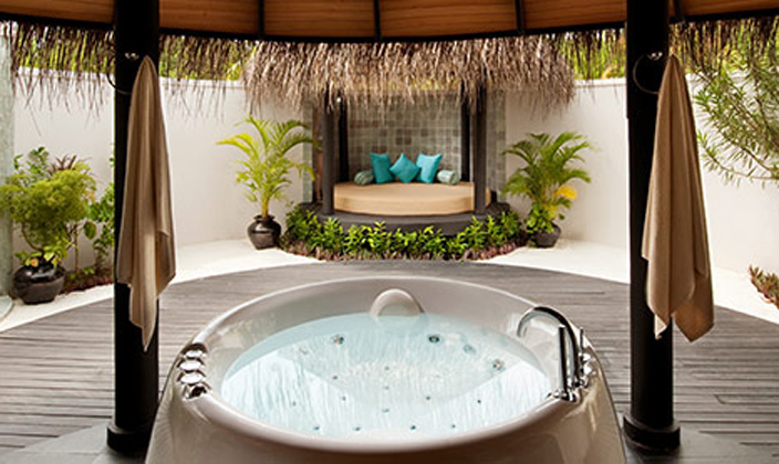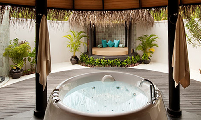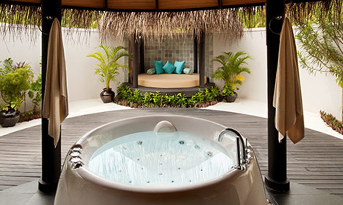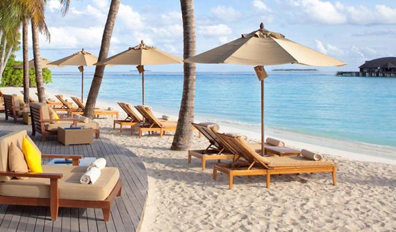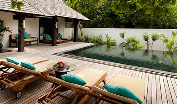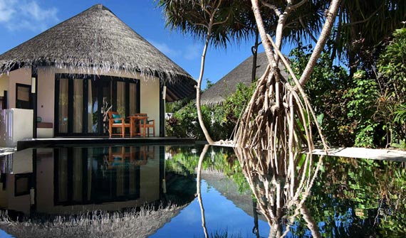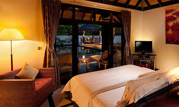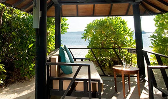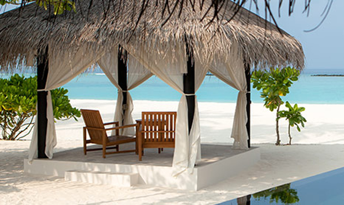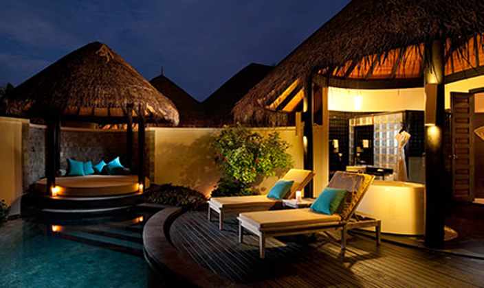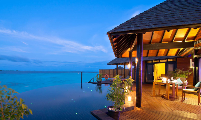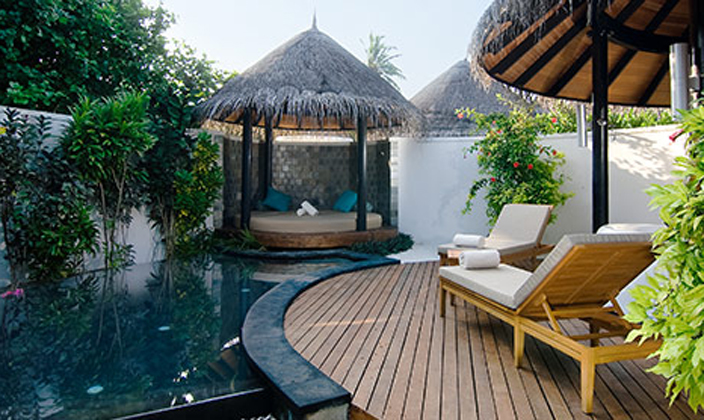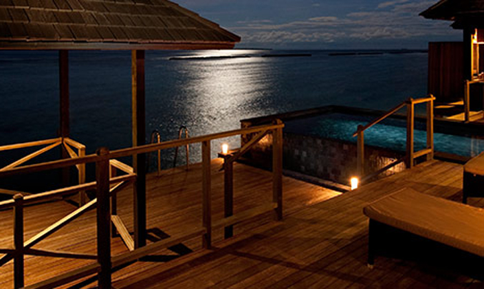 池畔海濱別墅可分為臥室和獨立的起居區,帶有私人游泳池,只能從臥室進入。 戶外露臺帶有頂棚,坐在豪華舒適的躺椅上可以俯瞰您的私人涼亭,最適合欣賞島上的美景,并且海灘就近在咫尺。在池畔邊緣還設有帶有涼棚的躺椅,在夜晚燭光的映照下,盡顯神奇浪漫和寧靜。