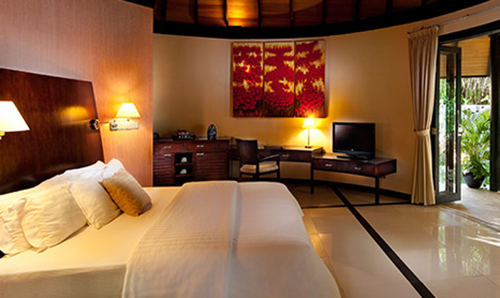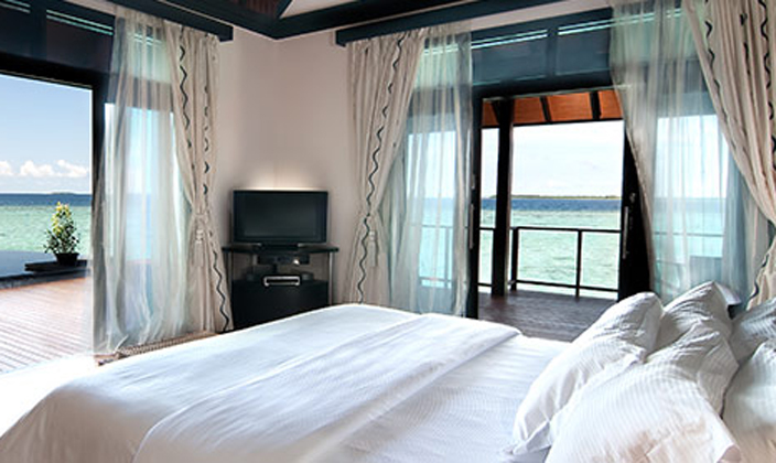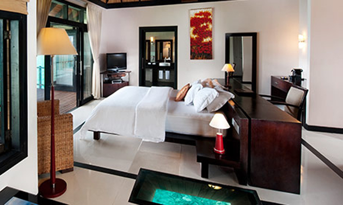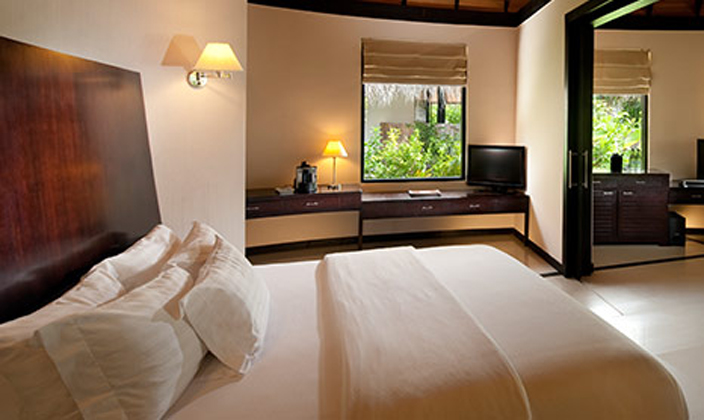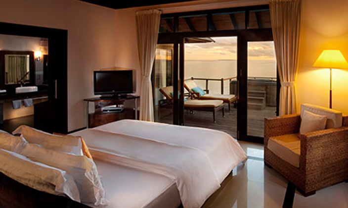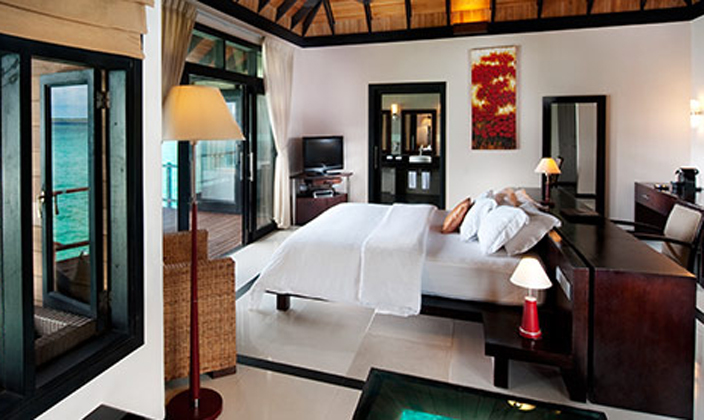 在水上套房可縱情享受帶有一個主臥室和獨立起居區的寬敞住宿空間。打開臥室的推拉門,客廳和浴室通往多層陽臺,私人無邊際泳池則延伸到瀉湖及遠處。別墅一角陰涼的涼亭邀請您享受片刻寧靜。
