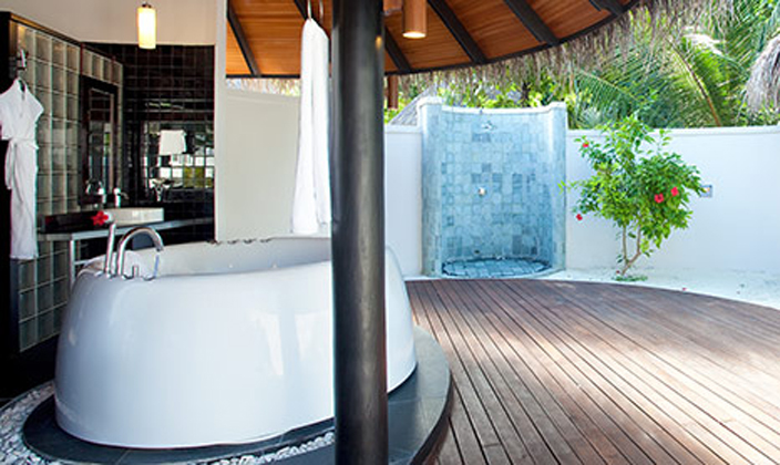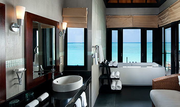 水上別墅從特大號床、休息區和寬敞的陽光甲板望去,優雅的開放式客廳和一塊天然調色板完美融入了無邊的海景。 寬敞的浴室配備了雙洗手盆和露天水上淋浴,水療浴缸適合您一邊悠閑地泡澡,一邊欣賞令人著迷的海景。