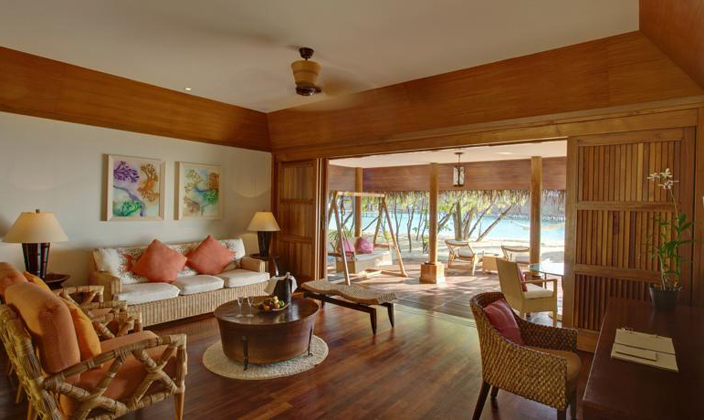 建于瀉湖之上的獨立位置,有四柱大床,大座位區和陽光浴甲板,室外淋浴設施,加大浴缸,可觀賞到海洋風景。