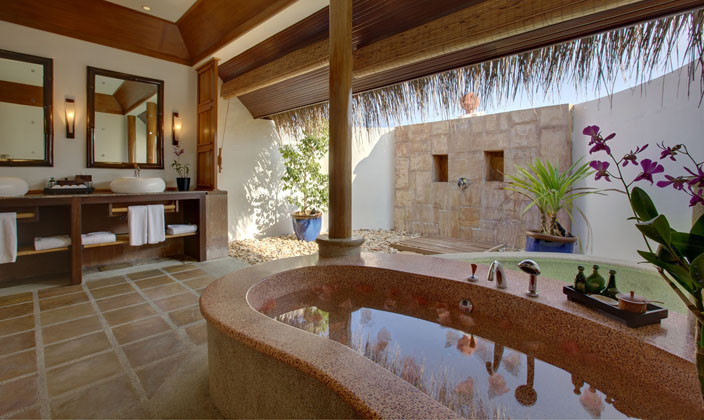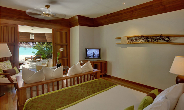 海灘別墅位于島嶼珊瑚沙灘的邊緣,私人的空間從海灘一直延伸到瀉湖。每間別墅都有自己私人的迷人海洋室外區域。手工制作的木,棕櫚,竹等天然材料的廣泛使用提供一個優雅的室內環境。