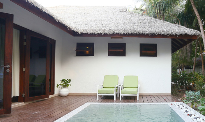 海濱沙灘泳池別墅和其他的房型是獨棟的,給人一個私人住宅的感覺,客房的露臺是私有的,不與相鄰的房間的客人分享,房間設有一個大型居住區,單獨的臥室與舒適的大床,一個戶外淋浴的浴室,獨立淋浴和浴缸,坐在木制露臺的沙灘椅上可以欣賞無限海洋美景。