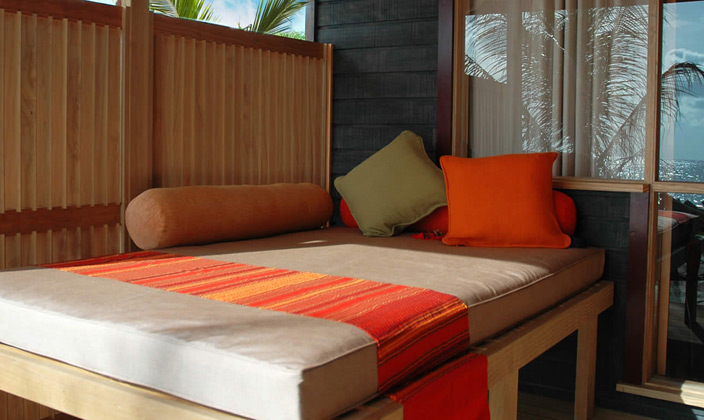 花園高級房位于島嶼的東北面,座落在如畫的花園中,在‘O’海灘別墅的后面。提供舒適的藤制家具、寬敞的露天淋浴和雅致的花園。花園高級房適合家庭住宿,沒有年齡限制。