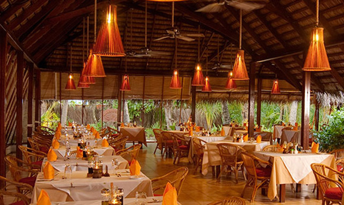 美食特色:酒水、飲料。 酒吧介紹:Haruge酒吧,位于主餐廳旁邊的菩提樹的樹蔭下,有一個大面積的安靜休息室和熱鬧的露天甲板,提供雞尾酒和鮮榨熱帶果汁,酒吧里儲存眾所周知的品牌烈酒、葡萄酒和啤酒等。