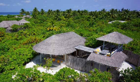 ·私人沙灘入口 ·設有沙發的私人花園 ·樹頂全景用餐平臺和觀景平臺 ·兩個配備齊全的臥室,獨立淋浴區 ·白天可在起居室頂躺臥 ·私人游泳池 ·正對島嶼湛藍的環礁湖 雙臥沙灘泳池別墅隱藏在茂密的熱帶植被中,正面大洋,是家庭或情侶出游獨家的理想選擇。別墅由兩棟沙灘別墅組成,每棟別墅都有寬敞的臥室和室外浴室,別墅之間為公共區域,設有餐廳和起居區。此外還設有 10 米私人游泳池和專屬沙灘入口,距離沙灘僅幾米之遙。陽光躺椅巧妙地放置在游泳池平臺邊,在蔭翳中享受陽光的沐浴。聽著柔和的海風吹動樹葉的聲音,在樹枝環繞的露天淋浴或室外浴缸中美美地洗去塵垢,或者在私人花園中靜靜放松自己。您還可爬上樹頂全景式觀景平臺,一覽馬爾代夫迷人的自然、海藍寶石般的海洋景觀和回味無窮的赤道夕陽,更設有舒適的座椅和用餐區,非常適合共同度過一段美好的時光。