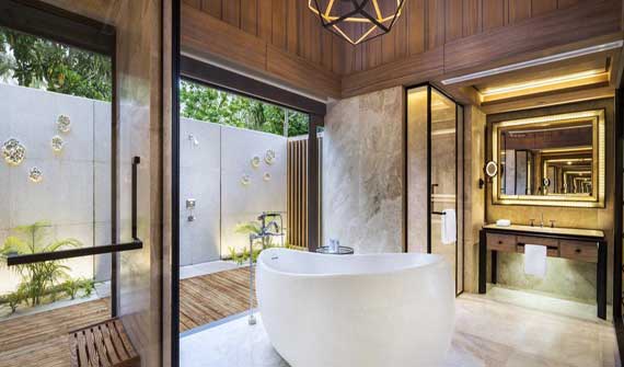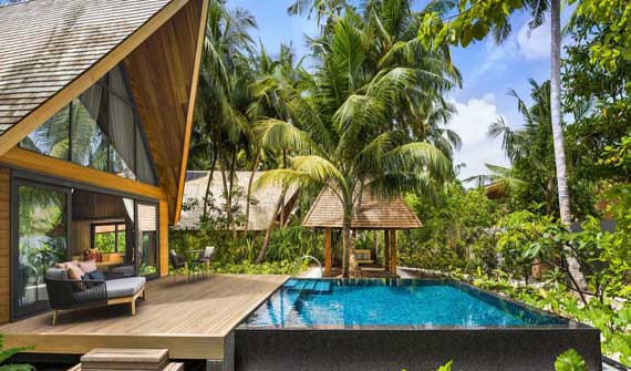 花園泳池別墅面積為150平米,供應空調、私人泳池與衛星電視等設施,應有盡有。另外還有私人陽臺游泳池、陽光甲板、太陽椅及免費的無線網絡接入服務。在陽光露臺上沐浴馬爾代夫的和煦陽光,或者在私人白沙灘上悠然漫步。在高懸于私人按摩池上的圓形躺椅上慵懶地舒展四肢。露天淋浴區設了獨立浴缸與熱帶雨林花灑,您可以在星空或者碧藍的天空下淋浴。