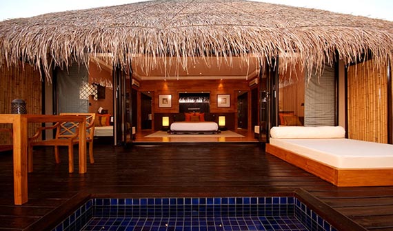 蜜月別墅,采用木質地板和裝飾,配以多彩熱帶主題床品、傳統茅草屋頂,營造出本土海灘居住格調,是這里蜜月旅行的首選,絕對的私密讓你測底放松身心。觀看日落,享受冰鎮香檳,依偎在舒適的特大號床或在華麗的私人泳池盡情嬉戲。蜜月套房設有木地板和裝飾,搭配五彩斑斕的熱帶主題的床單和傳統風格的茅草屋頂,給人一種強烈的傳統海灘住宅的感覺。