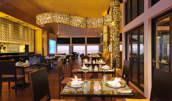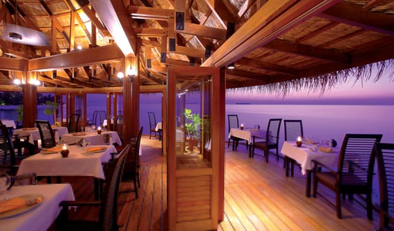 美食特色:新鮮海產和國際風味美食。餐廳介紹:置身于帶茅草屋頂的水上小屋享用馬爾代夫精致美食。 開放式的餐廳無論室內還是戶外都有燦爛的燈光照明,營造獨家用餐風情。