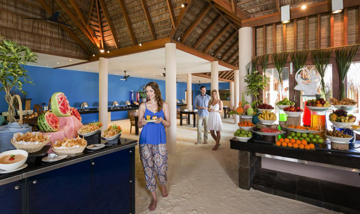 美食特色:亞洲美食。 餐廳介紹:島上的主餐廳,傳統沙質地板,以自助餐的形式供應各種美食,自助餐可以按著菜單給你現場烹飪,湯、面包和甜點是自制新鮮的,還有味道非常棒的熱帶水果。滿足每一位旅客的需求。