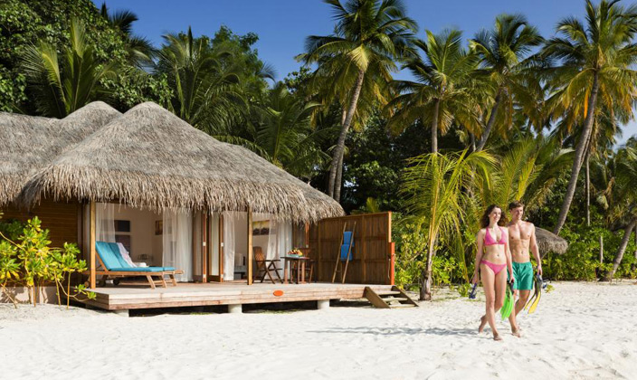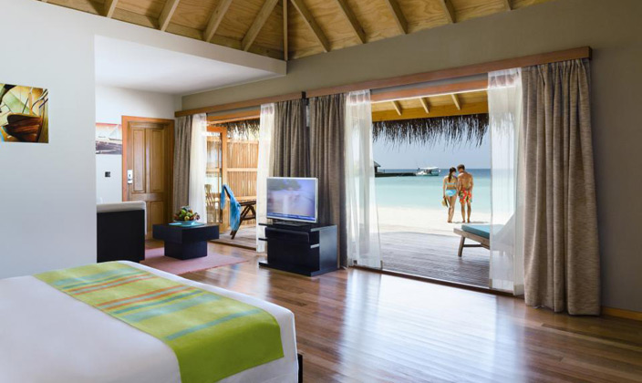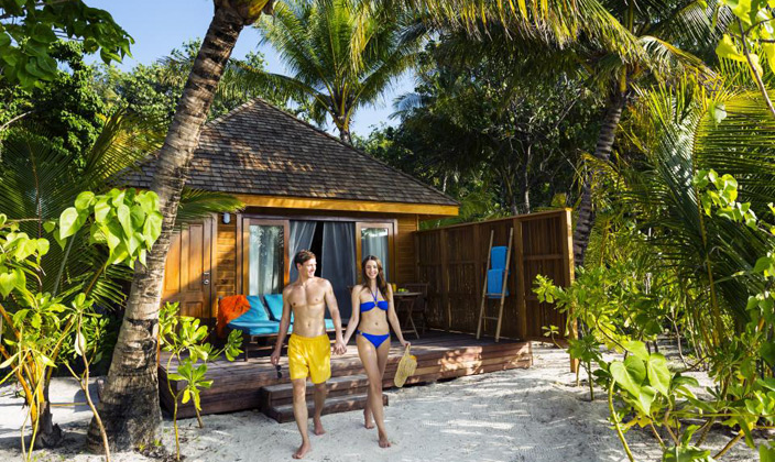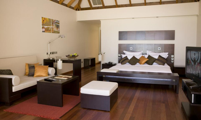 沙灘別墅坐落在島上的熱帶植被之中,按摩浴缸沙灘別墅是相同的,只是比按摩浴缸沙灘別墅小,房間中的裝潢設計非常的自然和諧,給人一種安靜祥和的感覺,但是能觀賞到大海的角度有些狹窄。