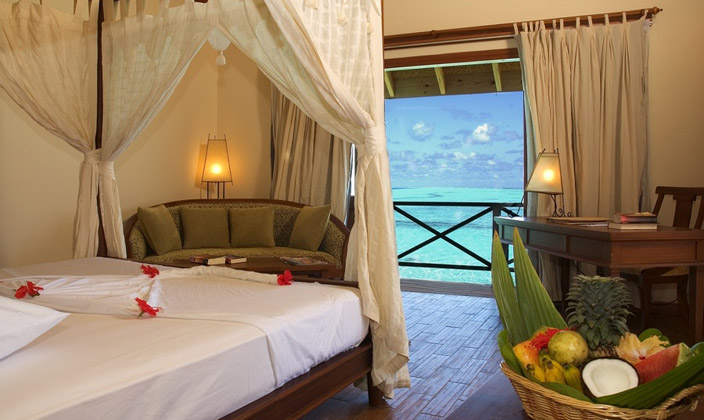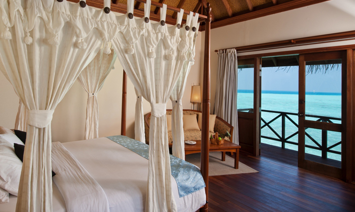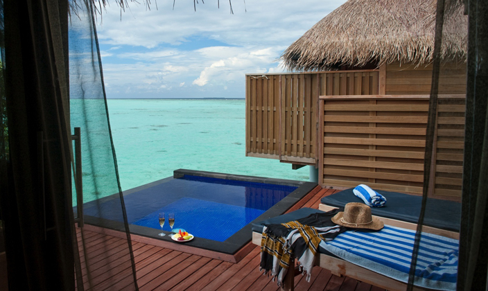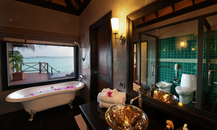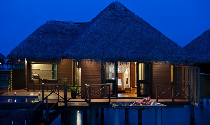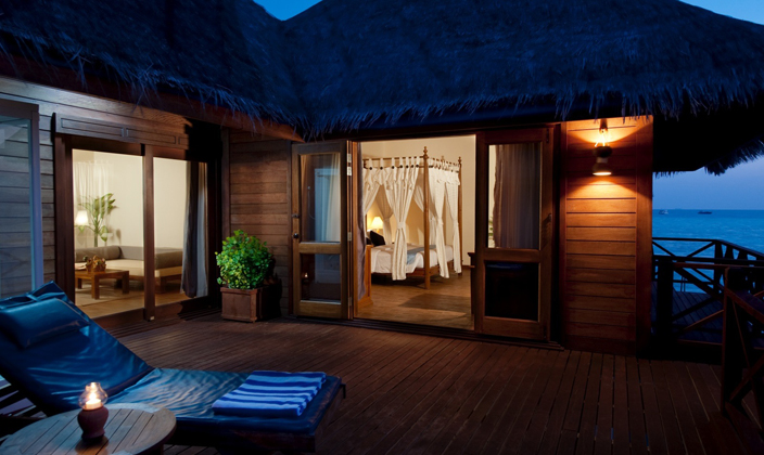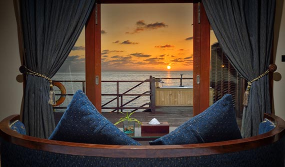 蜜月水上別墅的特色是有三面的大落地窗,美麗的海景盡入眼底。除了擁有JacuzziWatervilla的所有設施外,每個蜜月水上別墅都有一個單獨的客廳用落地玻璃面板把大自然的壯麗帶到你家門口。