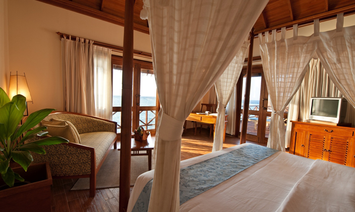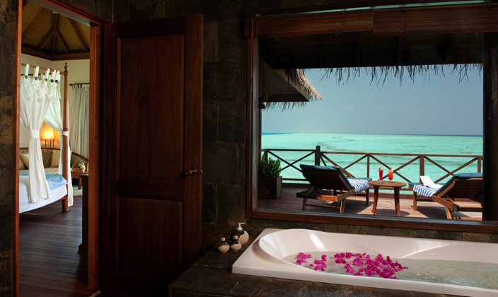 在甲板上的私人按摩浴缸和躺椅上,可以俯視美麗的海灘和礁湖,您可以從私人的木梯直接進入瀉湖,享受這難得的陽光及海水。