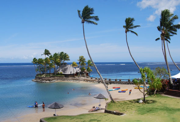 斐濟是南太平洋上珍珠般的島嶼,地跨東、西半球,由 332 個島嶼組成,其中106個島有人居住,大部分是珊瑚礁環繞的火山島。180度經線貫穿其中,是世界著名的度假勝地、旅游天堂。被譽為“全球十大蜜月旅游勝地之一”、“全球十大美女海灘之一”。