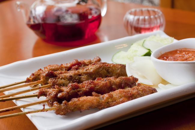 從裝飾精美有空調的賓館、飯店到喧鬧的咖啡店、平民菜館;從市場里的小吃店到街邊小攤,應有盡有。沙嗲是最受歡迎的馬來食物,它是將切塊并鹵上香料的牛肉、羊肉、雞肉用細竹簽串起來到炭火上烘烤而成的食品,咝咝作響的沙嗲配以濃香的花生醬、生洋蔥、小黃瓜和米糕一起吃。沙嗲被稱為馬來西亞民間的“國萊”??о?、椰漿飯、油飯、番茄飯、咖喱牛肉、咖喱雞、怡保面食??以米飯為主食的馬來飯菜,以辛辣和咖喱味而著稱。