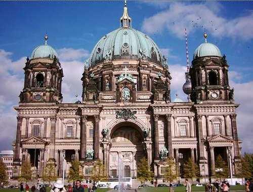 德國(guó)柏林市中部博物館島的東端。曾是德意志帝國(guó)霍亨索倫王朝(Haus Hohenzollern)的宮廷教堂。遠(yuǎn)眺博物館島可以看到宏偉的建于1905年的新文藝復(fù)興建筑柏林大教堂(Berlin Dom),它以前曾是霍亨索倫皇族的宮廷教堂,其家族成員都埋葬在這里的地下室中。教堂內(nèi)部修飾富麗豪華,于同一時(shí)期由同樣的建筑家Raschdorff設(shè)計(jì)。其中最創(chuàng)珍貴的是大選帝侯及夫人Dorothea,弗里德里希國(guó)王一世及王后索菲·夏洛滕的棺材價(jià)值連城。主圣壇是1850年F·A·Stüler的作品。美術(shù)館非常值得一看,風(fēng)景獨(dú)特。每天下午3點(diǎn)可以欣賞免費(fèi)的管風(fēng)琴演奏。