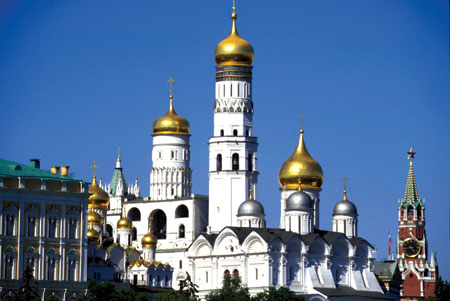 克里姆林宮內矗立著四座建筑精美的教堂:十二使教堂、圣母升天教堂、天使報喜教堂和圣彌額爾教堂。它們分別建于15、16世紀,是俄羅斯與