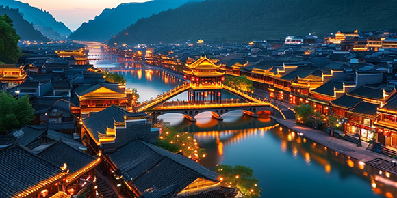 早餐后,游覽曾被新西蘭著名作家路易艾黎稱贊為中國最美麗的小城--【鳳凰古城】;欣賞沿途的古城墻、吊腳樓、虹橋……遠離兩岸熙熙攘攘的喧鬧,感受黃永玉大師筆下那《永不回來的風景》。參觀【沈從文故居】、【萬壽宮】;打卡【網紅翠翠街】這條古街應證了千年厚重的歷史文化沉淀,集休閑,娛樂,購物,民俗于一體,沿街有苗家扎染、蠟染、銀飾、挑花、刺繡等多種多樣的民間工藝品以及眾多風味小吃;參觀有代表性的苗族銀器傳承中心、熊氏蠟染鋪、陳家老號姜糖、阿牛血粑鴨、吳花花的扎染鋪、王春的“苗家小鋪”等眾多工藝美食店鋪。
