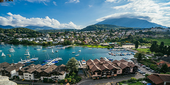 14:00 乘車前往“純美小鎮”龍疆,它的周圍是一群雪 山,遠遠望著這雪山與湖光交融,五彩繽紛美得像人間天堂。龍疆小鎮依山而建,鎮上所有的房子都掩映在精致繽紛的花園中,愛美的居民把各自 的家園都打扮的美不勝收,這里保有瑞士最純美的風光,可謂隱世之地。(自由活動約 30 分鐘)