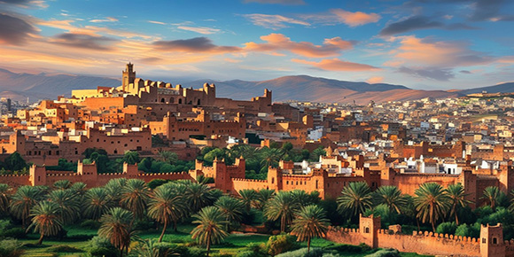 酒店早餐后,參觀被美國著名雜志(Traveler)評為全球最浪漫的 10 大城市之一的九世紀的菲斯古城(游覽時間約 2 小時),探訪那里的中古世紀老城區(1981 年被聯合國教科文組織 UNESCO 列為世界文化遺產)中的 Attarine BouInaniamedersas (古蘭經經學院)、Nejjarine 泉、外觀伊德里斯陵墓(MoulayIdrissZaouia)(古都修建者)和外觀世界第一所大學——卡拉維因大學(Qarqouiyyin)。之后前往臭名昭著的“大染缸”(皮革染坊)、銅盤子、地毯、馬賽克、阿甘油等手工藝作坊;可游覽到眾多店鋪(菲斯古城為開放式自由購物場所,并非旅行社安排購物店,商品質量參差不齊,請謹慎購買):面包店、銅器店(含珠寶)、皮具店(含染坊)、紡織品店、阿甘油、馬賽克等。午餐于百年古跡餐廳享用當地特色餐。之后前往摩洛哥伊斯蘭古都城梅克內斯:梅克內斯古城于 1996 年作為文化被列入《世界遺產名錄》。古城墻雄偉壯觀,以有「勝利、凱旋」之意曼索爾城門( Bab Mansour)聞名于世(維修中,只可遠觀);之后前往梅克內斯以北 30 公里古羅馬北非遺跡-沃魯比利斯城(游覽時間約 30 分鐘),