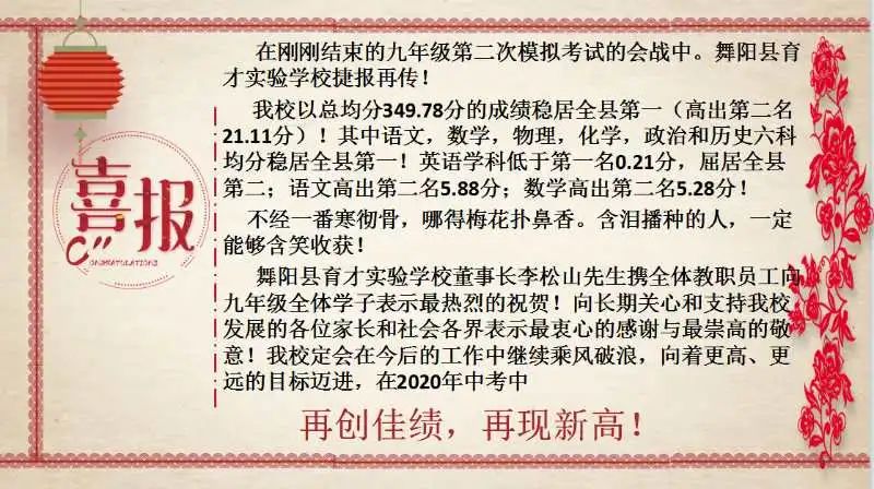 ——舞陽育才實驗學校2019-2020年度第二學期初中部再傳捷報