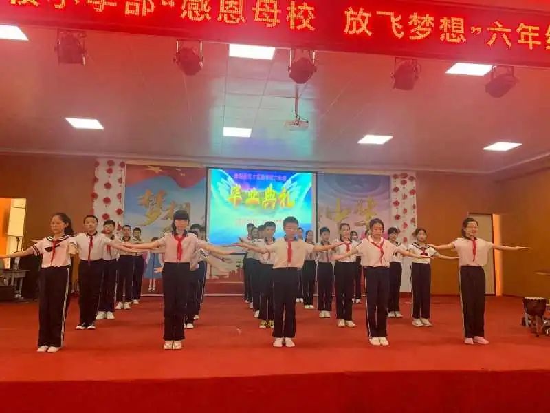在這夏日炎炎的七月里,我們的六年級同學們即將要告別小學生活,步入中學生活,在這里,我們全體六年級教師歡送你們。我宣布:“感恩母校,放飛夢想”畢業典禮現在開始!