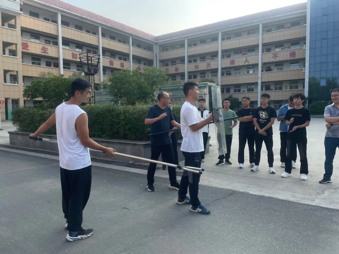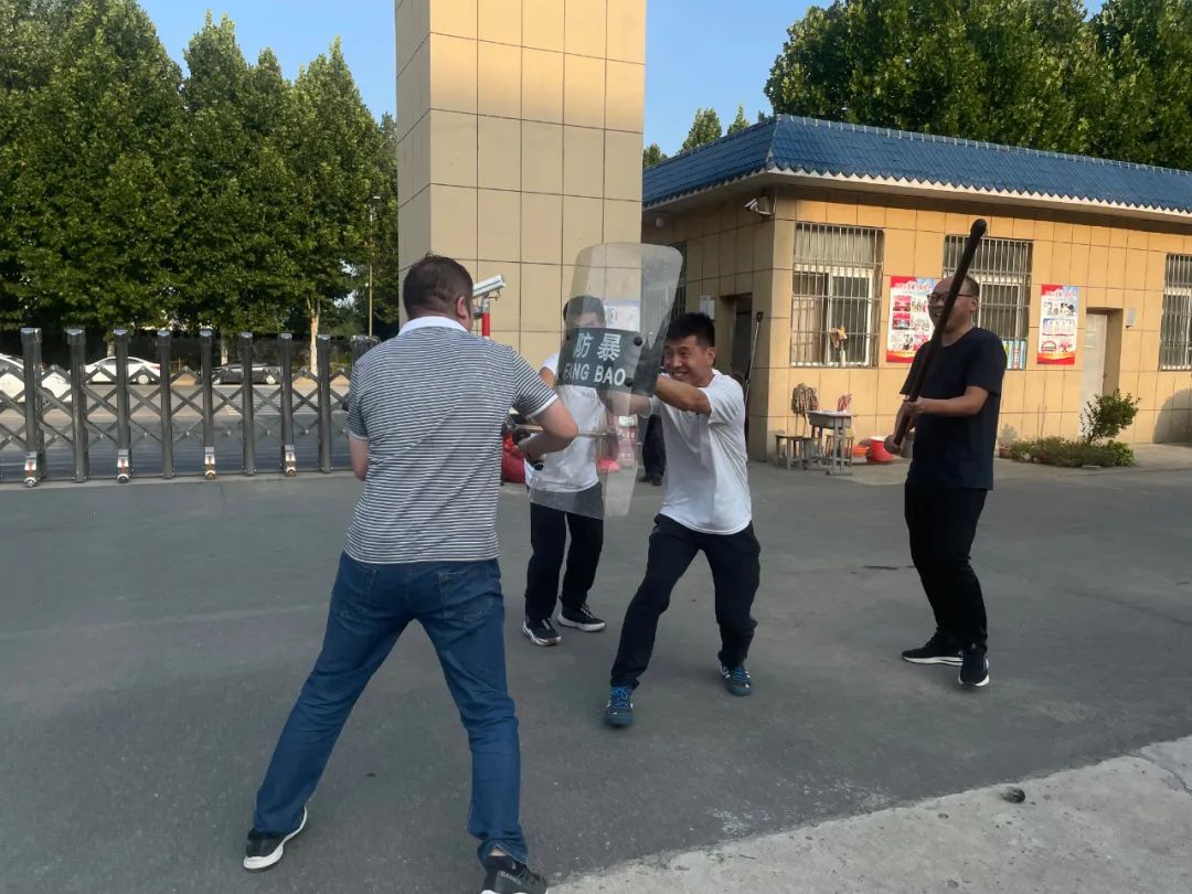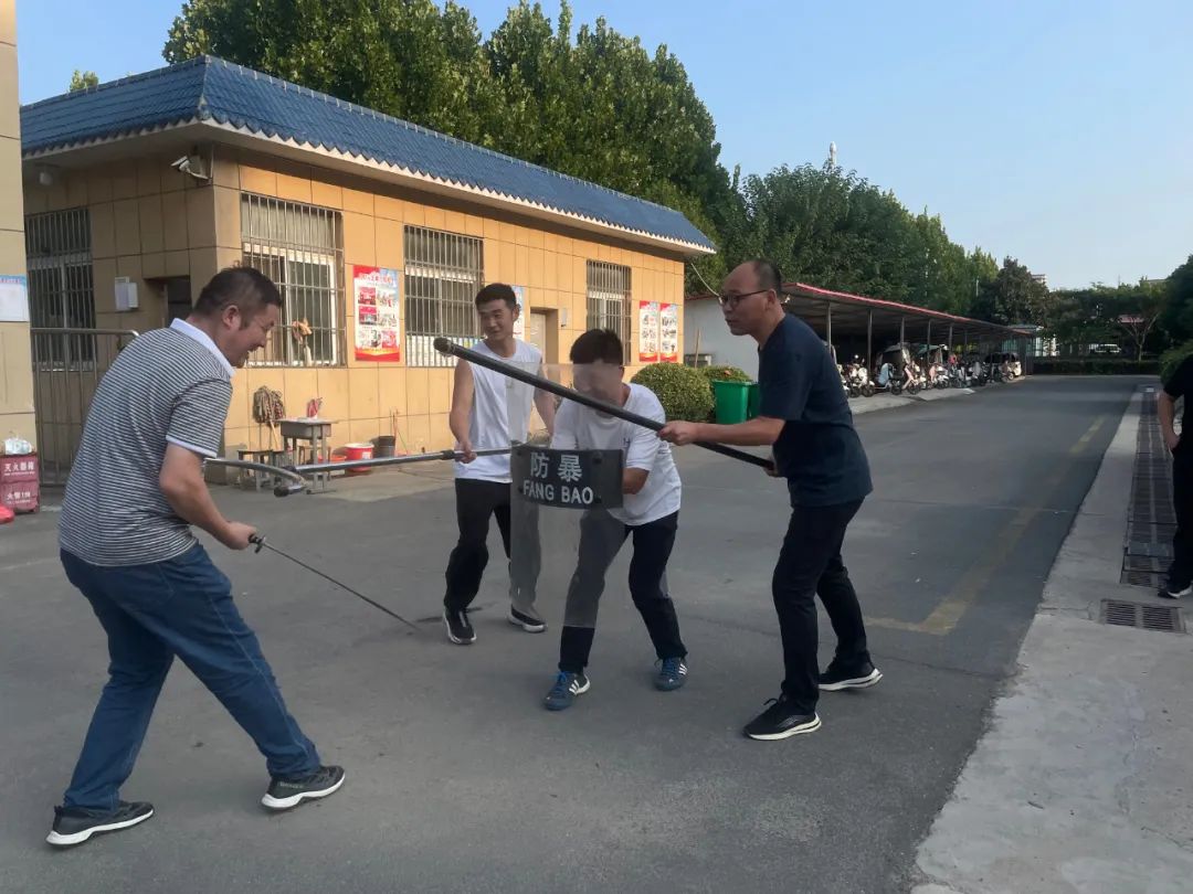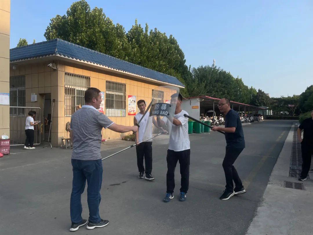為有效應(yīng)對、處置校門口突發(fā)的暴力事件,維護廣大師生人身安全和校園正常教育教學(xué)秩序,防范、制止校門口突發(fā)的暴力傷害師生的犯罪行為,維護學(xué)校和社會穩(wěn)定,舞陽縣育才實驗學(xué)校于2024年9月3日下午在校門口開展最小應(yīng)急單元演練。演練前,學(xué)校召開了最小應(yīng)急單元準(zhǔn)備會,制定了詳細的演練方案和安全預(yù)案,陳校長對參會的所有人員進行了安全培訓(xùn)和指導(dǎo)。各位演練人員提早熟悉了演練方案和人員分配。政教處兩位主任和郭老師對學(xué)校領(lǐng)導(dǎo)及其他老師進行防暴盾牌、鋼叉、長棍等物防器械使用講解,提高老師們與安保人員對物防器械的熟知與應(yīng)用。隨后進行了模擬實戰(zhàn)演練,學(xué)校應(yīng)急小組成員第一時間攜帶裝備到達事件發(fā)生區(qū)域,熟練使用防護器材,對可疑人員進行圍堵、控制,展現(xiàn)了應(yīng)急小組成員對校園突發(fā)事件團結(jié)協(xié)作、反應(yīng)迅速的能力,充分檢驗了培訓(xùn)成果。演練結(jié)束后,陳校長在總結(jié)中強調(diào)切實提高校園安保人員和老師們的應(yīng)急處理能力,遇到突發(fā)情況要拉好警戒線,確保校園的安全穩(wěn)定。此次校園最小單元應(yīng)急安全演練,反映了我校對安保工作的高度重視,增強了校園安保隊伍的安全意識,進一步提高了學(xué)校應(yīng)對突發(fā)事件的處置能力,為學(xué)校高質(zhì)量平安校園建設(shè)奠定了堅實的基礎(chǔ)。