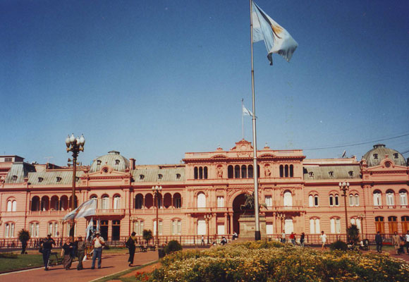 “以前我每天都要去沖浪,”哈姆向我介紹說,“隨身帶著暖水瓶,冷了就上來喝口馬黛茶,邊喝邊和同伴們聊天,一混就是一下午,日子過得可愜意了。現(xiàn)在不行了,剛買的這塊地有很多清理工作要做。”說話間車子駛過幾幢粉紅色的樓房,其中有幾幢還用鐵絲網(wǎng)圍了起來,在這片恬靜的草原上顯得格外突兀。“這些樓房就是當(dāng)年貝隆總統(tǒng)修建的。原來是給工人休假用的,現(xiàn)在變成了青少年夏令營基地。那幾幢圈起來的樓房則是阿根廷總統(tǒng)夏季的行宮。”