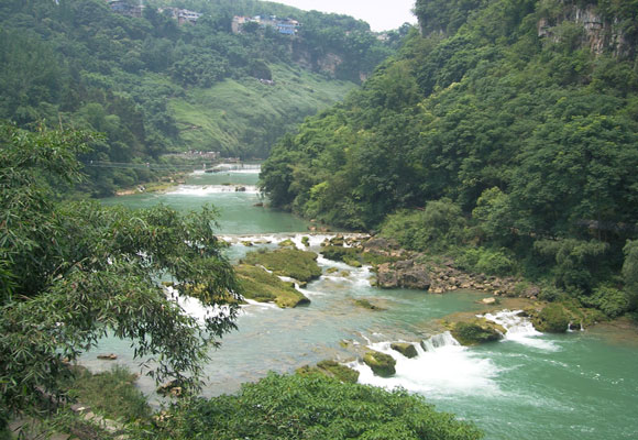 今天要去向往已久的黃果樹大瀑布了,早上8點,昨天送我們回賓館的面的司機楊師傅已經在門外等我們了,我們跟他已經談好價格,包車一天,他看我們只有三個人,所以價格不高,600元。 (推薦楊師傅,13984341058,一個實在的司機)。我們不必換大巴,不必到景區坐環保車,省力許多。楊師傅很負責,一路幫我們介紹沿途的風景,我們還路過紅楓湖,看下風景足亦。大概1個半小時, 到達了天星橋,我們足足花了3個小時游玩了前半段和后半段,前半段人真是多啊,都是導游帶的隊伍,過了高老莊,這些人都出去了,我們開始游玩下半段,最精彩的就是銀鏈墜潭,真是神奇。