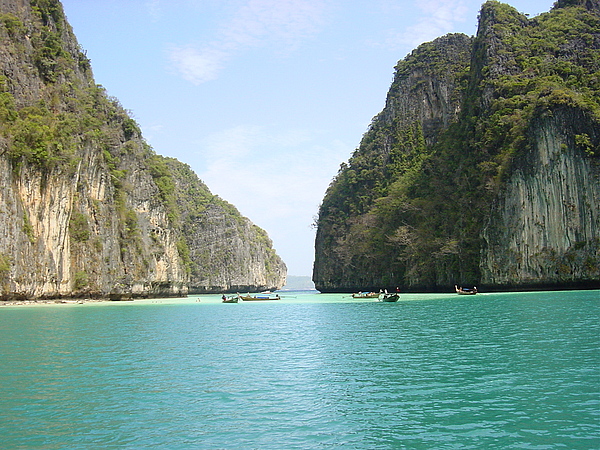 甲米,位于安達曼海岸邊,這里的風(fēng)景是整個海岸最出色的地方,有暖暖的沙灘,有自己獨立于外界的悠閑的生活節(jié)奏,美麗的景色充滿了浪漫的元素。不同于別處的沙灘,每一片的面積都不大,互相獨立,互補打擾,各自靜靜的守護者這個地方。甲米的海也有自己的風(fēng)情,不同于別處一望無際的大海,在這里,附近的大小各異的島嶼一覽無余,而海水的顏色也由遠處向小島附近逐層變淺,最深處是深藍色,然后是水藍色,之后是淺藍色,最靠近島嶼的地方是綠色。