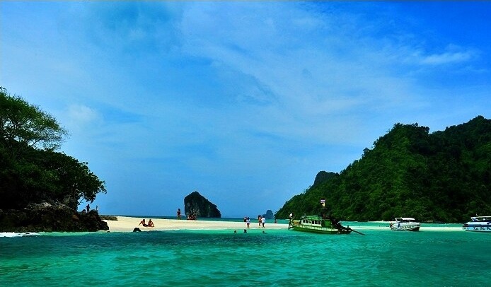 甲米是個小島,島上總共就只有兩萬多名居民,到處都是樹木如蔭、鮮花如云,沙灘上沒有任何垃圾,細白柔軟的沙粒會輕柔地沒過腳背,海水看起來清澈得如同一塊寶石,底下的石塊與貝殼都是清晰可見,到甲米旅游的視覺感觀絕對不遜于世界上任何一個沙灘。