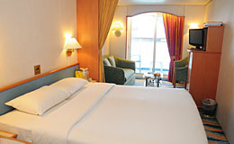樓層:8、9、10樓 容納人數(shù):3位成人/2位成人及2位兒童 設(shè)施:1張雙人床及1張雙人沙發(fā)床 |