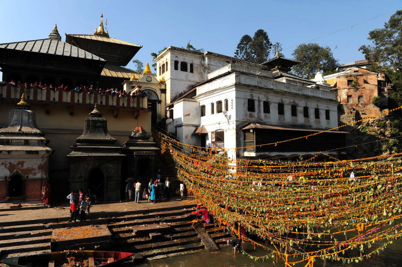 這里最吸引人的是能夠配合你拍照的苦行僧們以及印度教的火葬儀式。帕斯帕提那寺的入口,是一整排商店和攤拉,這里所出售的物品,多半是印度教徒用的鮮花和各種顏色的蒂卡粉。這里是印度教徒舉行火葬的地方。印度教相信,死后燃燒軀體、并將骨灰灑放河中,靈魂就可以脫離軀體而得到解脫。