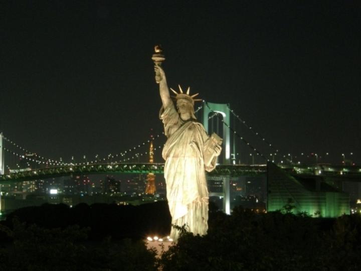 東京最受國內外游客歡迎的景點。彩虹大橋則是臺場最具代表性的景點。從臺場海濱公園起,是一條長達近2公里的跨橋散步路,漫步于此,可盡情領略東京海灣區夢幻般的夜景。