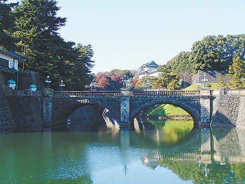 一條護城河環繞皇居,兩岸櫻花樹,林木掩映,這里本是德川家族居住的江戶城,明治維新后改建為皇居。河上一道二重橋,是皇居的象征,常有游人和它拍照合影留念。