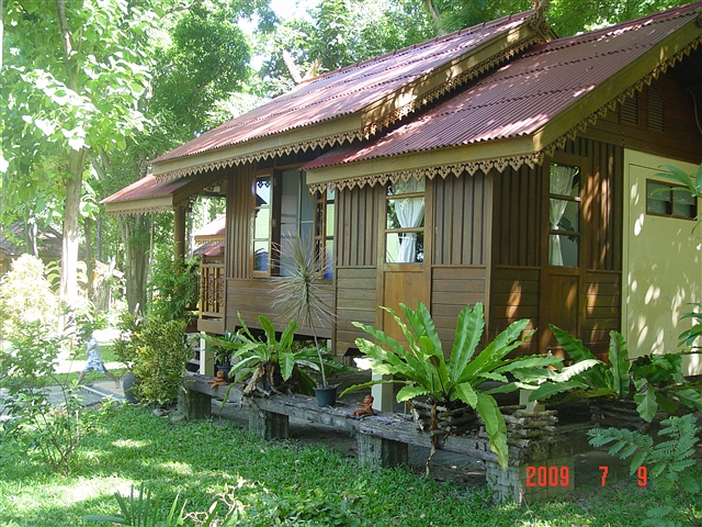 進(jìn)了公園大門收門票的地方,沿著海灘是一家挨一家的度假村。沙美島是個(gè)南北走向的細(xì)長的海中小山,度假村90%以上都坐落漂亮東岸上。幾乎所有的客房走路到海邊都不會(huì)超過5分鐘,幾乎所有的房子都在望海的小山坡上、在濃密的樹林里。