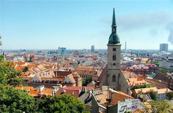 斯洛伐克首都布拉迪斯拉法市最顯著的建筑物之一,位于多瑙河岸邊一處85米高的高地上。城堡形如一張倒置的八仙桌,遠遠望去,城堡四角高聳的塔樓猶如桌子的四條腿,別具一格。